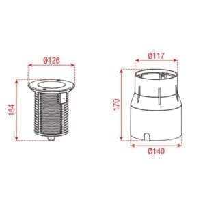 - Inclusief een ABS inbouwhuls (inbouwdiepte: 170 mm, max. diameter: 140 mm)