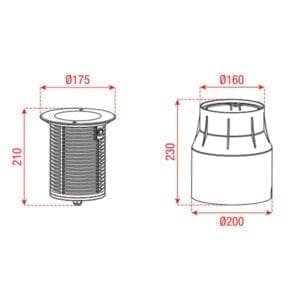 - Inclusief een ABS inbouwhuls (inbouwdiepte: 230 mm, max. diameter: 200 mm)