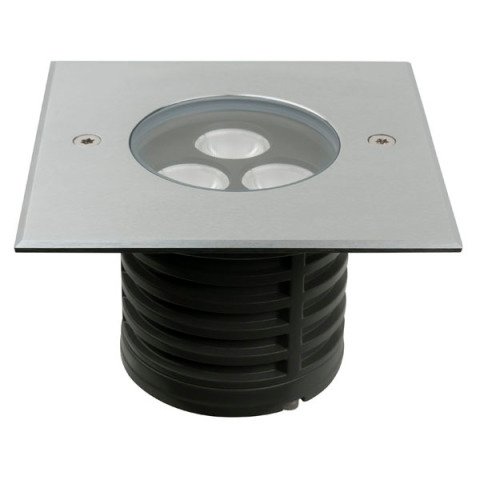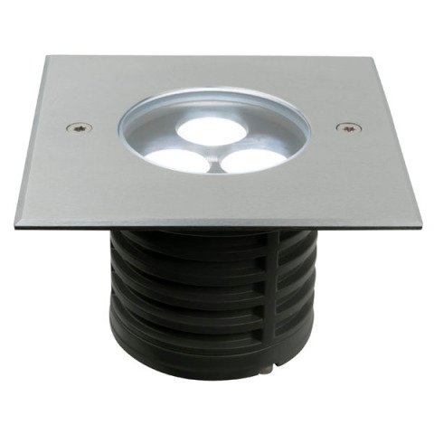 Dit vierkante LED grondspotje kan in de grond of in de vloer geplaatst worden. Eventueel is het zelfs mogelijk om hem in een muur of wand te plaatsen. Dit LED grondspotje beschikt over een drietal LED’s met een gezamenlijk vermogen van 6 Watt. Die LED’s produceren een natuurlijk warm wit licht met een kleurtemperatuur van 3000 Kelvin. De symmetrische lens – die gemaakt is van gehard glas en echt niet zomaar kapot gaat als iemand er bovenop gaat staan of eroverheen rijdt – verspreidt het licht onder een hoek van dertig graden.