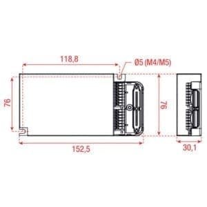 - Max. uitgangsspanning: 30 – 55 Volt (DC) (afhankelijk van de ingestelde uitgangsstroom)