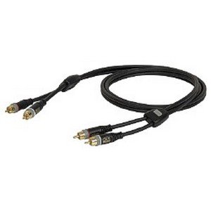 Deze kabel – die aan beide uiteinden twee RCA (tulp) connectoren heeft – is drie meter lang.