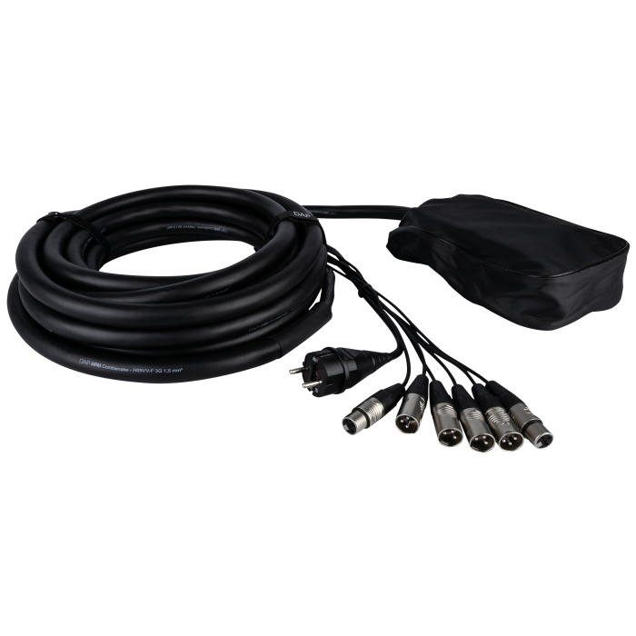 5 audio-sends, 2 audio-returns, geïntegreerde 3 x 1,5 mm² stroomkabel