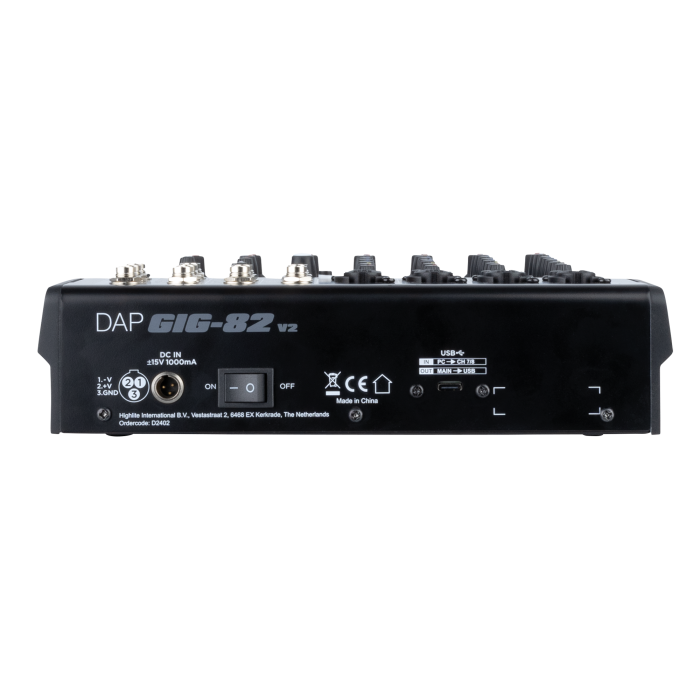 Een van de meest vooruitstrevende kenmerken van de GIG-82 V2 is de geïntegreerde USB-C-interface. Deze biedt 2-in/2-out-functionaliteit, waardoor de mengtafel niet alleen als een hoogwaardige audio-interface dient voor het opnemen van je mix naar een computer of DAW, maar ook als een afspeelapparaat voor audio vanaf je computer. Deze functionaliteit wordt slim gedeeld met kanaalingang 7/8, wat de flexibiliteit van het apparaat verder vergroot en het ideaal maakt voor zowel studio- als live-opnamesituaties.