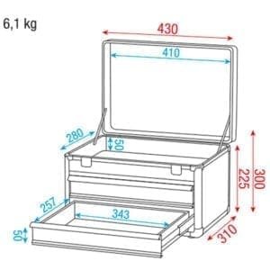 - Toolcase met een opklapbaar deksel en 2 laden