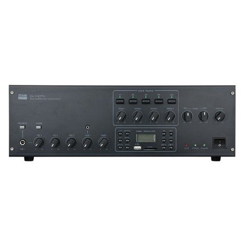 Deze versterker heeft vier regelbare zones, wat inhoudt dat je het geluid voor vier verschillende ruimten of plekken apart kunt afstellen. Zoals al gezegd, heb je genoeg aan deze versterker, de 100 Volt luidsprekers en de bekabeling. Je hebt dus geen tuner of muziekcomputer nodig. Dit komt doordat deze versterker een ingebouwde tuner heeft en voorzien is van zowel een USB-poort waar een USB-stick met muziek op kan worden aangesloten als een SD-kaartlezer. Natuurlijk is het wel mogelijk om een CD-speler, een ander afspeelapparaat of een microfoon aan te sluiten op deze versterker.
