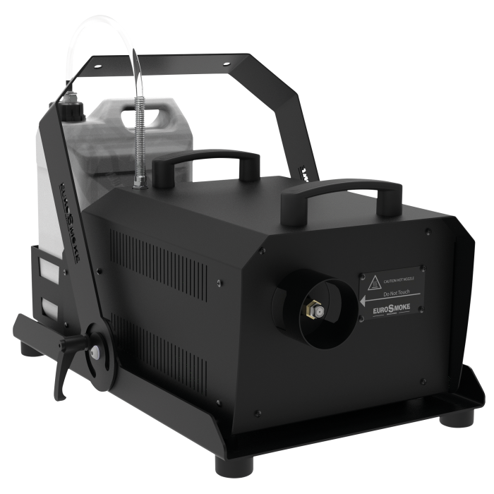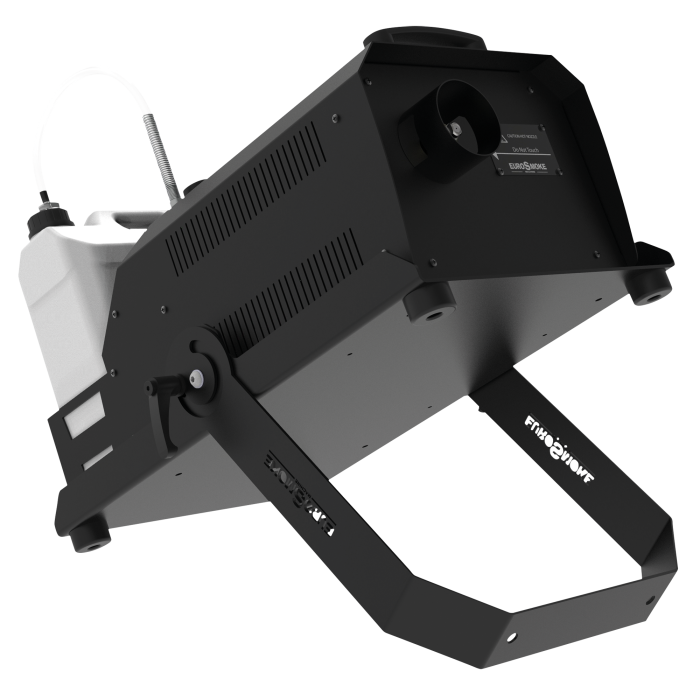 Naast plafondbevestiging biedt de set ook de innovatieve mogelijkheid om op de vloer te worden geplaatst. Deze opstelling wordt gecomplementeerd door een geïntegreerd kantelmechanisme, waardoor de rookmachine gemakkelijk naar boven kan worden gericht. Dit is met name handig in situaties waar plafondbevestiging niet mogelijk of gewenst is, en biedt de creatieve vrijheid om rook vanuit een lager standpunt te laten opstijgen, wat unieke en atmosferische effecten kan creëren.