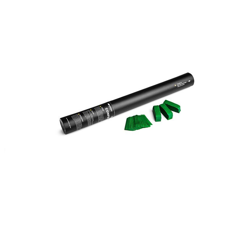 Met dit handheld confetti kanon van MagicFX kun je – zonder dat je dure apparatuur of een stroomvoorziening nodig hebt – confetti de lucht in schieten. Dit vijftig centimeter lange kanon is gevuld met donkergroene confetti snippers. Wanneer je aan de onderkant van dit kanon draait, vindt er een kleine explosie plaats en wordt de confetti twaalf meter ver of hoog weggeschoten. Dit kanon is ideaal voor gebruik tijdens een carnavalsoptocht of tijdens een carnavalsfeest. Maar natuurlijk kan het ook op een tal van andere feesten gebruikt worden.