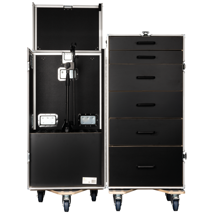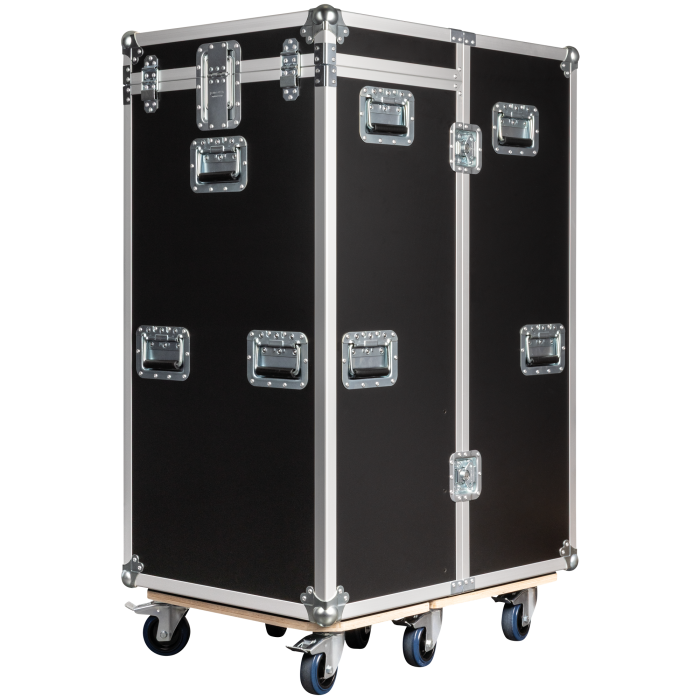 Aan gebruiksgemak is eveneens uitgebreid aandacht besteed. De case is uitgerust met ergonomisch ontworpen handgrepen aan alle zijden, wat comfortabel tillen en manoeuvreren mogelijk maakt, zelfs bij een volledig beladen koffer. Voor naadloze verplaatsing over vlakke ondergronden en eenvoudige positionering op locatie, beschikt de Drawer Case 3 over zeven zwenkwielen. Deze wielen zijn niet alleen van hoge kwaliteit en bieden uitstekende manoeuvreerbaarheid, maar zijn ook voorzien van remmen, zodat de koffer veilig op zijn plaats kan worden gezet zonder ongewenst wegglijden. Tot slot, een strategisch geplaatste labelschotel biedt de mogelijkheid voor snelle identificatie, essentieel in drukke backstages en magazijnen waar meerdere cases worden beheerd. De Showgear Drawer Case 3 is daarmee een complete, betrouwbare en onmisbare investering voor elke professional die waarde hecht aan orde, bescherming en efficiëntie van zijn apparatuur.