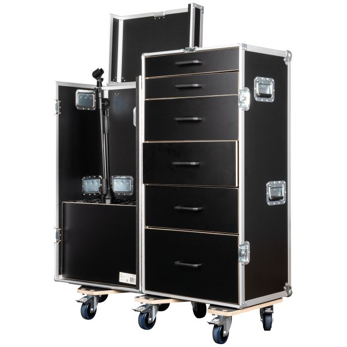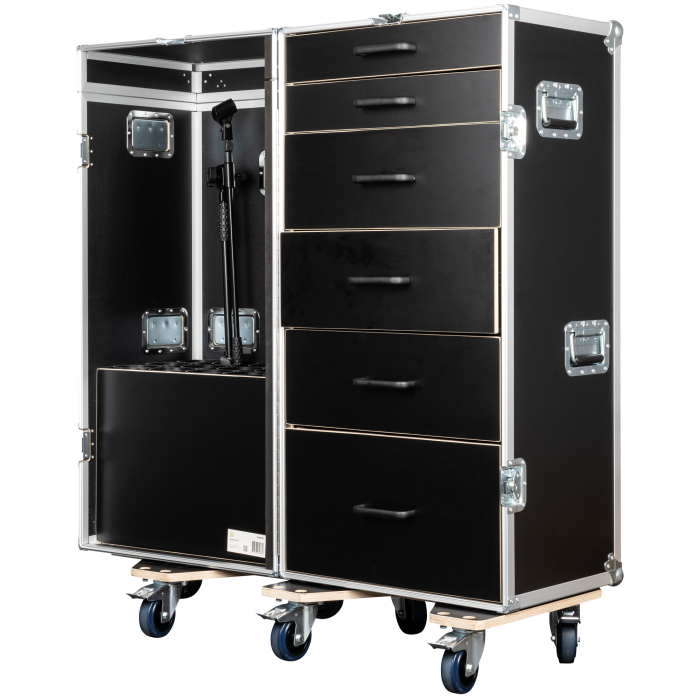 De Showgear Drawer Case 3 is meer dan zomaar een opbergkoffer; het is een doordachte, professionele oplossing, specifiek ontworpen om te voldoen aan de veeleisende behoeften van geluidstechnici, bands, verhuurbedrijven en evenementenproducenten. Deze imposante, multifunctionele flightcase combineert naadloos gestructureerde opslag met een ongeëvenaarde veiligheid tijdens transport, met een bijzondere focus op microfoonstatieven en bijbehorende accessoires.