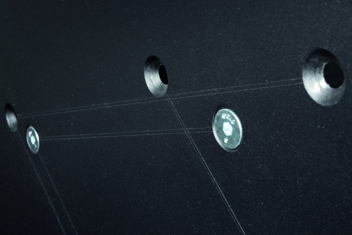 Een doordacht detail dat het installatiegemak aanzienlijk verhoogt, zijn de gelaserde aanduidingen aan de onderzijde van de plaat. Deze markeringen zijn niet alleen esthetisch, maar dienen ook een praktisch doel door de positionering en uitlijning van de truss-componenten te vergemakkelijken. Dit bespaart kostbare tijd tijdens de opbouw en vermindert de kans op fouten, wat cruciaal is in een dynamische evenementenomgeving.