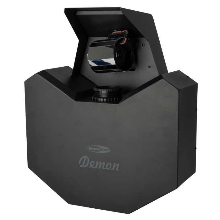 De revolutionaire barrel mirror en de moonflower mirror zijn beide voorzien van oneindige rotatie. Deze geavanceerde mechanische eigenschap zorgt voor een continue, vloeiende beweging van de lichtstralen en projecties, wat resulteert in prachtige, altijd veranderende effecten die de ruimte vullen met dynamiek en allure. De 180° pan-beweging van de spiegelkop draagt bij aan de flexibiliteit, waardoor de lichtbundel een breed bereik heeft over het oppervlak waarop geprojecteerd wordt. In combinatie met de interne programma’s en de geluidsgestuurde werking maakt dit de Demon tot de perfecte tool om elke show extra energie en een onmiskenbare “wow-factor” te geven.