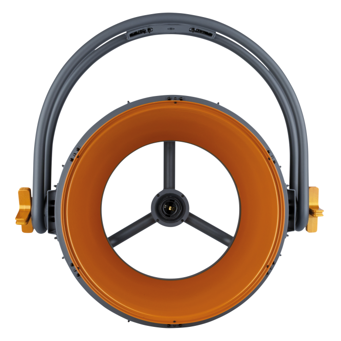 De gebruiksvriendelijkheid staat eveneens hoog in het vaandel. Een intuïtief OLED-scherm is geïntegreerd, wat de configuratie van de lamp buitengewoon eenvoudig maakt. Lichttechnici en ontwerpers kunnen snel en efficiënt de gewenste instellingen aanpassen, zonder gedoe met complexe menu’s of externe controllers. Bovendien is er gedacht aan de praktische aspecten van installatie. De lamp is voorzien van een robuuste quick-lock beugel, die een snelle en veilige montage op truss-systemen of 50 mm buizen garandeert. Dit betekent minder tijd voor opbouw en meer zekerheid tijdens het gebruik, wat essentieel is in dynamische productieomgevingen.