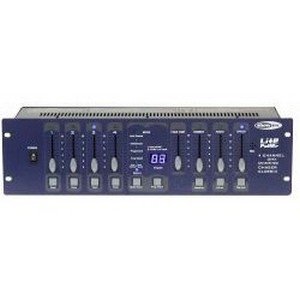 It has 42 built-in chase programs, which can run automatically, manually or to beat of the music by its built-in microphone or an external signal, which can be connected by the female RCA plug on the backside.