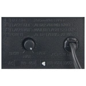 Op de achterzijde van de stroboscoop bevindt zich een draaiknop waarmee de flitssnelheid geregeld kan worden.