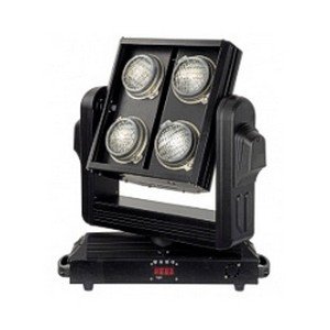 The Moving Stageblinder 4 is a powerful stageblinder which can be positioned in any position by its accurate pan and tilt movement. The fixture is equipped with 4x 120V 650W DWE lamps (not included) which create an enormous light output. The unit has a 16 bit resolution on the movement as well auto-correction on both the pan and tilt movement. Addressing of the fixture is easy by digital addressing.