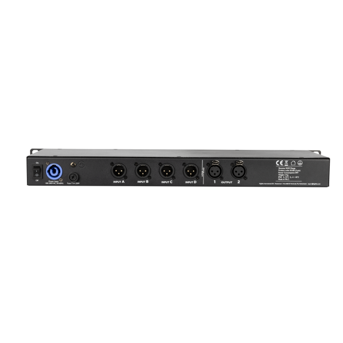 4 DMX-ingangen, 2 DMX-uitgangen