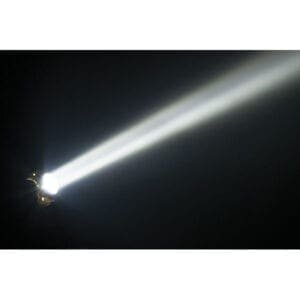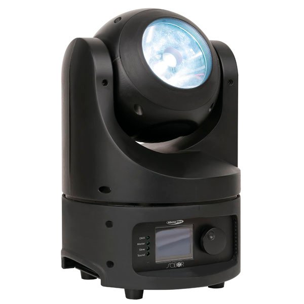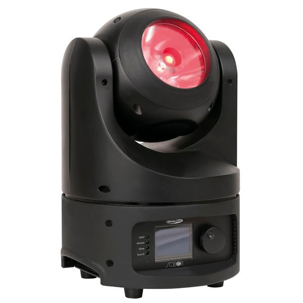 Veel compacter dan de Saber kan een Moving Head haast niet worden. Toch moet deze kleine en stijlvolle LED Moving Head van Showtec – die slechts 33 centimeter hoog is – niet onderschat worden. Met zijn 60 Watt RGBW LED haalt deze LED Moving Head een heel erg hoge lichtopbrengst. Hij produceert een zeer smalle lichtstraal met een openingshoek van vier graden. Die lichtstraal kan iedere denkbare kleur aannemen.