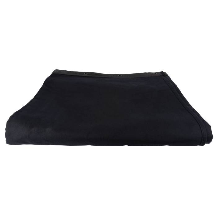 Onze speciaal ontworpen zwarte Backdrop is vervaardigd uit een robuust en zwaar doek van maar liefst 320 gram per vierkante meter. Dit materiaal is zorgvuldig geselecteerd vanwege zijn uitzonderlijke eigenschappen: het is volledig niet-reflecterend, wat betekent dat het geen licht weerkaatst dat de visuele integriteit van uw evenement zou kunnen verstoren, en bovendien is het brandvertragend behandeld. Deze brandvertragende eigenschap is van cruciaal belang voor de veiligheid en voldoet aan de strengste normen die gelden voor openbare evenementen en installaties. De diepzwarte afwerking van het doek garandeert een strak en professioneel podiumaanzicht, waardoor uw performers, sprekers of producten optimaal tot hun recht komen zonder enige visuele ruis.